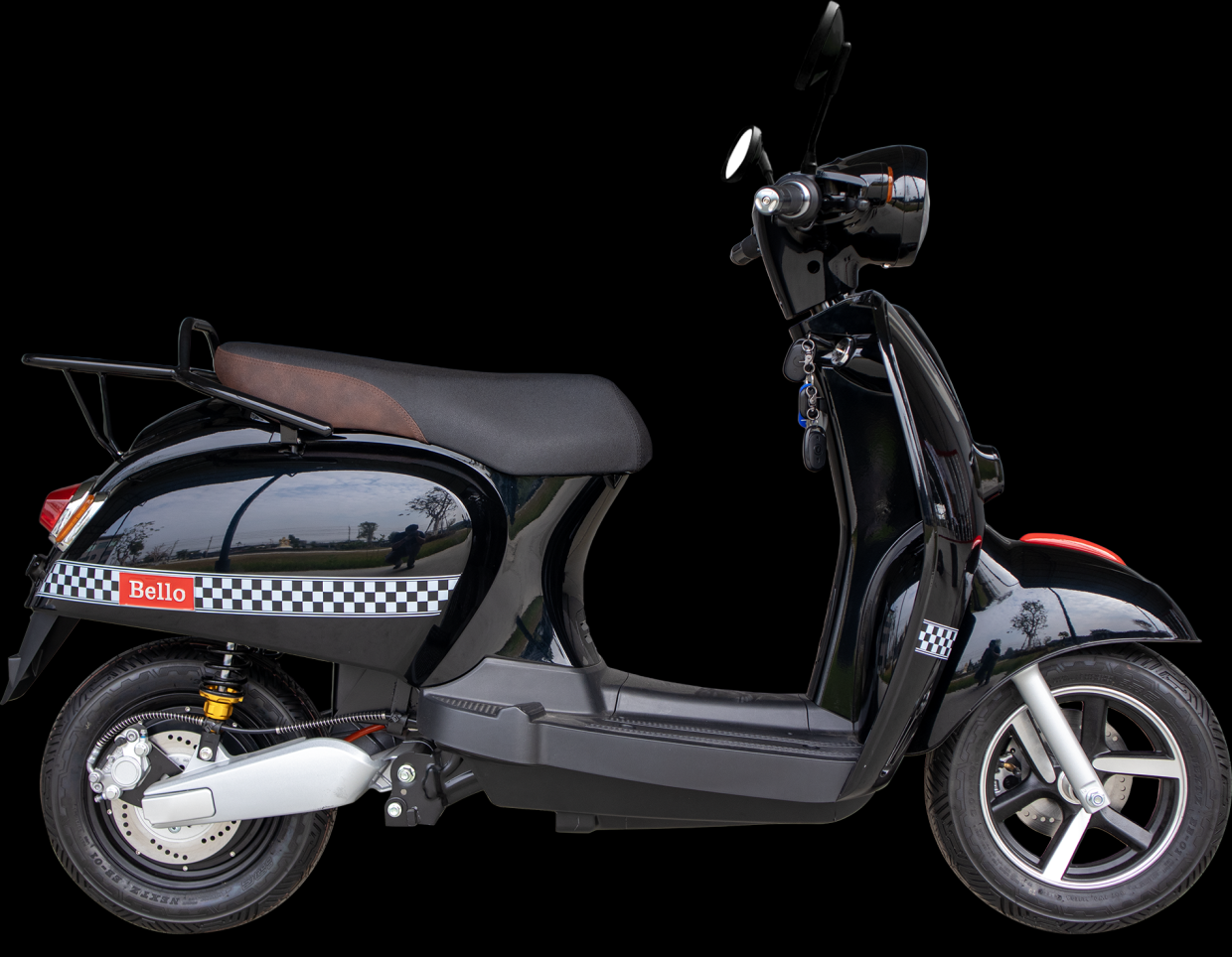 สกูเตอร์ไฟฟ้าดีไซจ์นเรทโรเรียบหรู พร้อมเส้นสายมีนีมอล และสีดำเงาพรีเมียม ตอบโจทย์ไลฟ์สไตล์คนเมืองที่ชื่นชอบความเรียบง่ายแต่โดดเด่น ความเร็วสูงสุดประมาณ 75-80 กม./ชม.