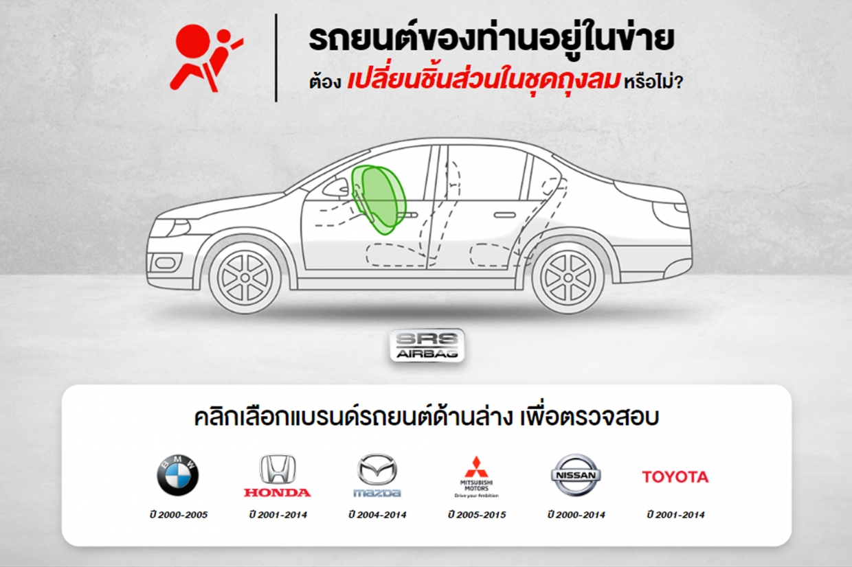 1. คลิคที่นี่ > www.checkairbag.com เพื่อตรวจสอบ