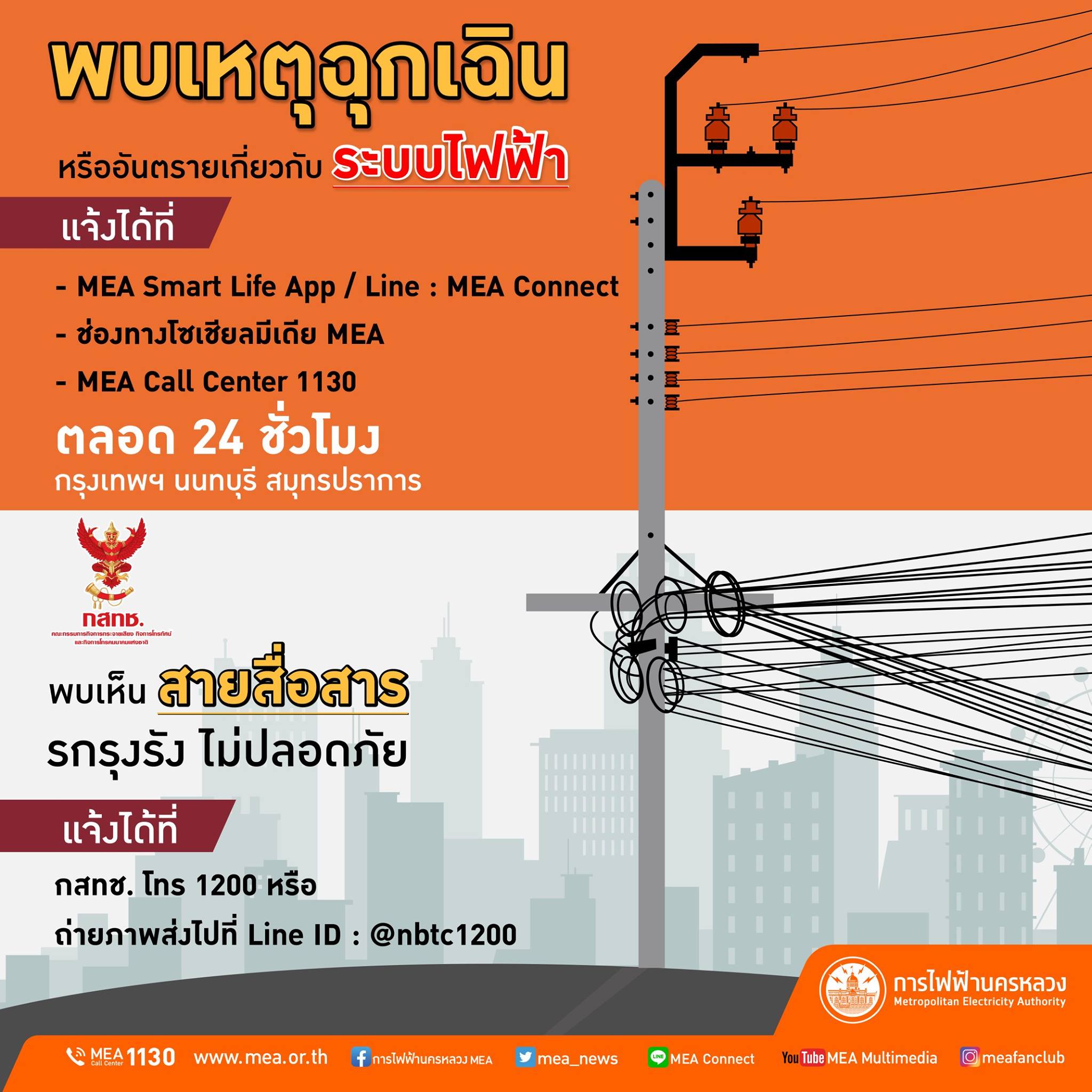 - โทรแจ้ง MEA Call Center 1130