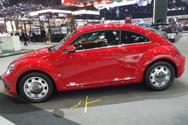 Volkswagen Beetle รุ่นล่าสุด เส้นสายย้อนยุค แฝงสันเหลี่ยมที่ทันสมัย ไฟหน้าทรงกลม ฝากระโปรงหน้าทรงโค้งมน รวมถึงซุ้มล้อโค้งขนาดใหญ่ทั้ง 4 ตำแหน่ง ล้อแมกขนาดใหญ่ 17 นิ้ว แต่มีรูปทรงย้อนยุคเช่นกัน โดยรวมแล้วเห็นแค่แว่บเดียวก็รับรู้ได้ทันทีว่านี่คือ Beetle หนึ่งในตำนานของโลกยานยนต์ที่ยังคงมีชีวิตอยู่ถึงปัจจุบัน