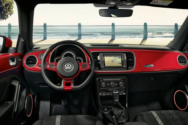 แม้ภายนอกจะออกแนวย้อนยุค แต่ภายในห้องโดยสารมีความทันสมัย แผงคอนโซลโดยรวมใช้สีเดียวกับตัวถังภายนอก จอภาพระบบสัมผัสขนาด 6.5 นิ้ว เบาะหลังพับเก็บได้แบบ 50:50 ระบบปรับอากาศอัตโนมัติ ในรุ่น Cabriolet ติดตั้งประทุนหลังคาผ้าใบ เปิด/ปิดด้วยไฟฟ้า
