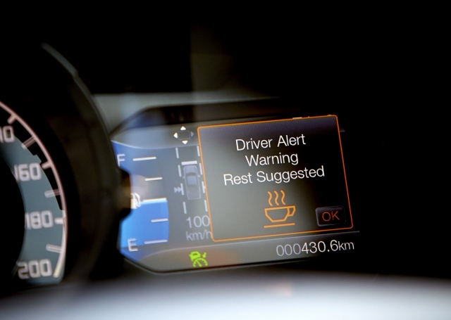 อีกหนึ่งระบบที่ทำงานต่อเนื่องกัน นั่นคือ ระบบแจ้งเตือนการเมื่อยล้าของผู้ขับขี่ (DRIVER ALERT SYSTEM) เมื่อระบบพบว่าตัวรถมีการเคลื่อนที่คร่อมเส้นแบ่งถนนบ่อยครั้ง ระบบจะอนุมานไว้ก่อนว่า ประสิทธิภาพการขับขี่ของผู้ขับกำลังลดน้อยลง (เช่น ง่วงนอน เหนื่อยล้า หรือหลับในเบื้องต้น) ระบบจะแจ้งเตือนด้วยเสียง และขึ้นสัญลักษณ์ถ้วยกาแฟบนจอดิจิทอลกลางมาตรวัด ให้ผู้ขับทำการหยุดพัก (การแจ้งเตือนจะหยุดลง หากรถหยุดสนิท ดับเครื่อง และเปิดประตู)