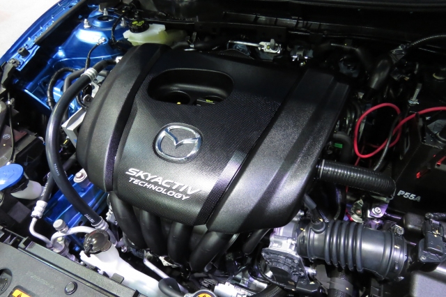 ส่วน MAZDA 2 ใช้เครื่องยนต์เบนซิน ขนาด 1.3 ลิตร SKYACTIV-G กำลังสูงสุด 93 แรงม้า ที่ 5,800 รตน. แรงบิดสูงสุด 12.5 กก.-ม. ที่ 4,000 รตน. อัตราสิ้นเปลืองรุ่นทอป SPORT HIGH PLUS อยู่ที่ 23.3 กม./ลิตร พอดีเช่นกัน (ตามที่ผู้ผลิตเคลมไว้ และสเปคใน ECOSTICKER)