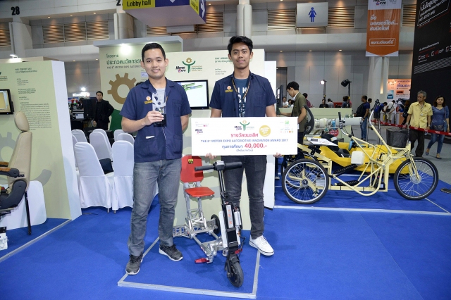 รางวัลที่ 1 โล่เกียรติยศ ประกาศนียบัตร และทุนการศึกษา 40,000 บาท ได้แก่ ผลงาน Tiny Urban Scooter (พาหนะส่วนบุคคลพับได้) โดย วัศพล สินทรัพย์ และเมธัส น้ำผุด จากมหาวิทยาลัยธรรมศาสตร์