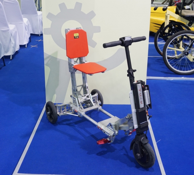 ผลงาน Ride Comfort Seat (ฐานเก้าอี้ดูดซับแรงสั่นสะเทือน) โดยณัชพล สุจิรพัฒน์พงษ์ สิริพงษ์ หวังศักราทิตย์ และชัชนันท์ ดวงตา จากสถาบันการจัดการปัญญาภิวัฒน์