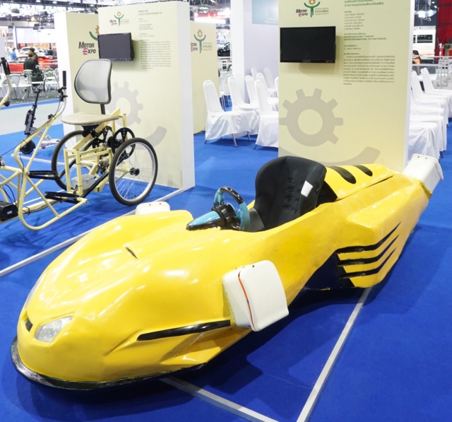 ผลงาน Exobuoyance Force Booster (เครื่องสร้างแรงลอยตัวจากภายนอกรถยนต์แบบฉับพลัน) โดย ทิพรัตน์ เปรื้องไชโย กชกร ครองสิน สุภาภรณ์ กลิ่นเกษร วิภา ต้นโนนเชียง ชาตรี ตวงมณีต่อวงศ์ และศิรวัฒน์ ตันติรัตน์ จากมหาวิทยาลัยเกษตรศาสตร์