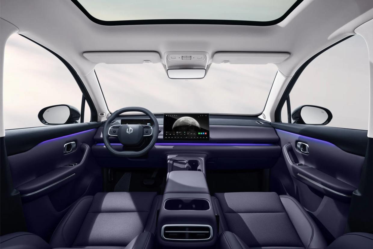 ภายในห้องโดยสารมีมิติกว้างขวางรองรับ 5 ที่นั่ง มาพร้อมโทนสีเลือกได้ 2 สี ทั้งสีแดงส้ม Red Cloud Orange และสีม่วง Star Purple แผงแดชบอร์ดจะมาในแบบมีนีนอล เรียบง่ายแต่ไฮเทค ซึ่งมีความแปลกใหม่ตรงที่ไม่มีปุ่มสั่งงานใดๆ บนคอนโซลแม้แต่จุดเดียว ซึ่งจะติดตั้งแผงหน้าปัดแบบลอยตัว LCD ขนาด 10.25 นิ้ว พวงมาลัยมัลทิฟังค์ชันแบบก้านคู่ท้ายตัด มาพร้อมหน้าจอกลางขนาด 14.6 นิ้ว ความคมชัดระดับ 2.5K เพิ่มความอัจฉริยะด้วยชิพ Qualcomm Snapdragon 8295 ทำงานด้วยระบบปฏิบัติการ Leapmotor OS 4.0 รุ่นล่าสุด สามารถโต้ตอบด้วยคำสั่งเสียง มีช่องวางแก้วน้ำด้านหน้า-หลัง 4 ช่อง 2 จุด และจุดแท่นชาร์จโทรศัพท์ 1 จุด รวมถึงติดตั้งชุดเครื่องเสียงลำโพง 12 ตำแหน่ง ให้กำลังขับ 840 วัตต์ รองรับระบบเสียงรอบทิศทาง 7.1 และกล้องมองภาพรอบทิศทางด้วย