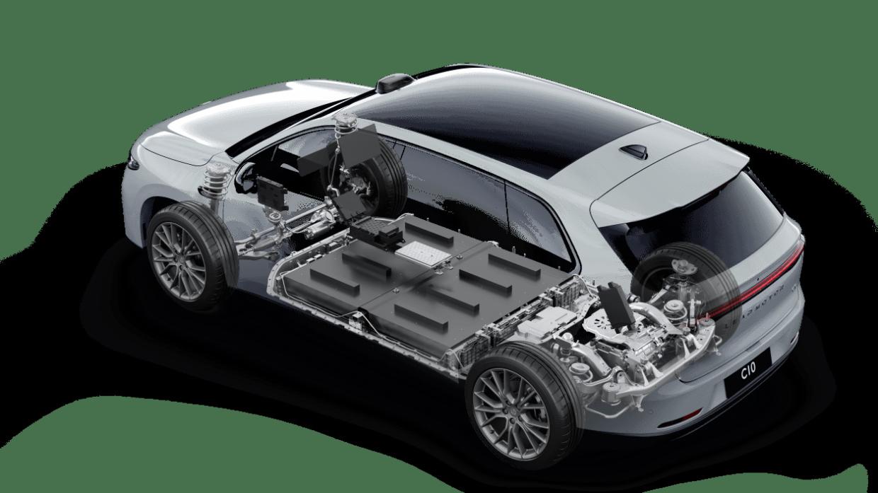 ส่วนของระบบขับเคลื่อน Leapmotor C10 ไฟฟ้าล้วน 100 % ในบ้านเราคาดว่าจะใช้ระบบขับเคลื่อนแบบมอเตอร์ไฟฟ้าเดี่ยว ขับเคลื่อนล้อหลัง โดยมาพร้อมกับมอเตอร์ไฟฟ้าที่ให้กำลังสูงสุด 230 แรงม้า แรงบิด 320 นิวทันเมตร อัตราเร่ง 0-100 กม./ชม. ภายในเวลา 7.29 วินาที พร้อมชุดแบทเตอรีแบบ LFP ที่มีความจุให้เลือก 2 ขนาด คือ 52.9 กิโลวัตต์ชั่วโมง และ 69.9 กิโลวัตต์ชั่วโมง วิ่งระยะทางไกลสุดอยู่ที่ 360-420 กม./การชาร์จไฟเต็ม 1 ครั้ง (ตามมาตรฐาน WLTP)