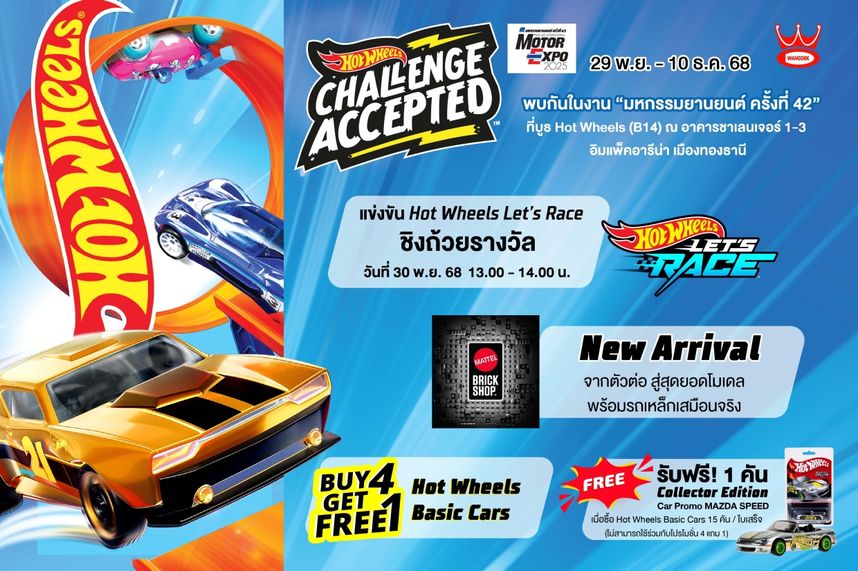 บริษัท วังเด็กทอยส์แลนด์ ขอเชิญทุกท่านที่หลงใหลในความเร็วและเสน่ห์ของรถโมเดล เข้าร่วมเป็นส่วนหนึ่งของ "Hot Wheels" บูธที่ขายรถได้เยอะที่สุดในงาน Thailand International Motor Expo 2025 ณ อิมแพ็ค ชาเลนเจอร์ ฮอลล์ 1-3 ระหว่างวันที่ 29 พฤศจิกายน – 10 ธันวาคม 2568 ที่บูธ B14