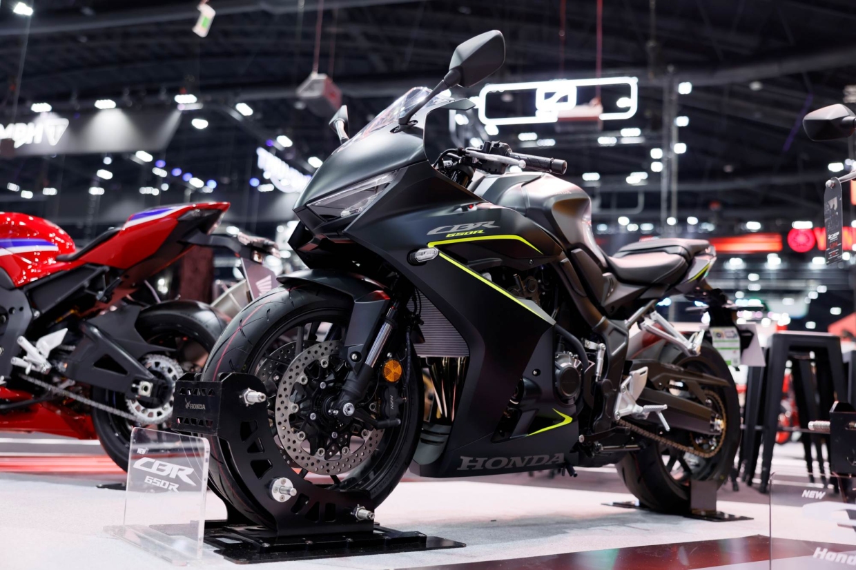 นอกจากนี้ Honda Big Bike ยังเผยโฉมไลน์อัพ CBR Series นำโดย New Honda CB650R E-Clutch Naked Bike ที่มาพร้อมเทคโนโลยี Honda E-Clutch มิติใหม่แห่งความเร้าใจ ถ่ายทอดอารมณ์จากสนามแข่งสู่การขับขี่บนท้องถนนได้อย่างลงตัว โดดเด่นด้วยดีไซจ์นสปอร์ทเรทโร และตัวถังสีใหม่ Grand Prix Red สีแดงสดสะดุดตา วางจำหน่ายในราคาแนะนำ 332,100 บาท ต่อด้วย New Honda CBR650R สปอร์ทไบค์สายพันธุ์นักแข่ง ที่ติดตั้ง Honda E-Clutch เทคโนโลยีคลัทช์ไฟฟ้าอัจฉริยะ ช่วยให้บิดมันส์ได้โดยไม่ต้องกำคลัทช์ พร้อมโหมดเปิด-ปิดการทำงานตามสไตล์ผู้ขับขี่ ดีไซจ์นภายนอกได้รับการรีเฟรชให้ดุดันยิ่งขึ้น มาพร้อมสีใหม่ Mat Gunpowder Black Metallic ถอดแบบดีเอนเอความเป็นสปอร์ทตัวจริง วางจำหน่ายในราคาแนะนำ 347,300 บาท