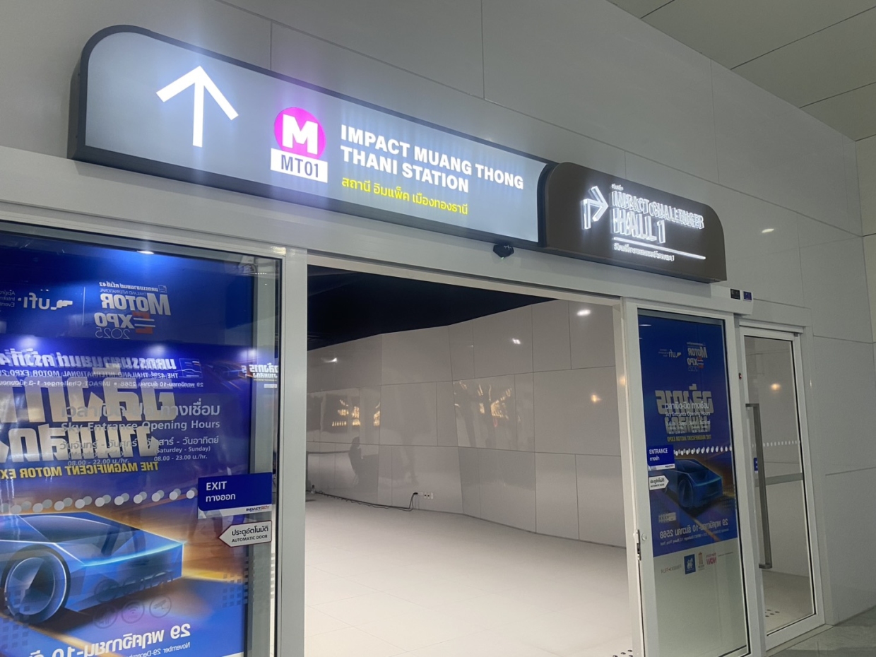 ** เมื่อมาถึงสถานีเมืองทองธานี ให้ไปรอขบวนรถที่ชานชาลา 3 เพื่อไปยังสถานีส่วนต่อขยายเพื่อไปงาน Motor Expo 2025